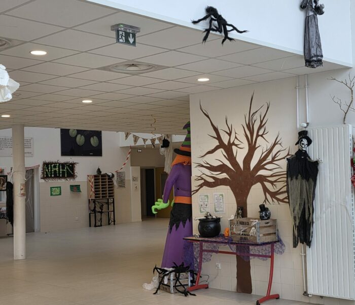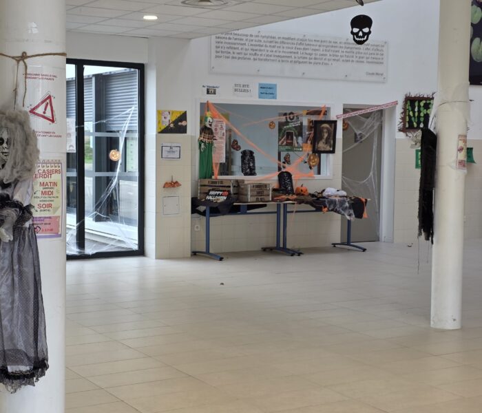 À l’approche des vacances d’automne, le hall du collège s’est paré de ses décorations d’Halloween. Un repas spécial sera servi aux élèves le jeudi 16 octobre. Durant cette même journée, un dress code sera proposé.