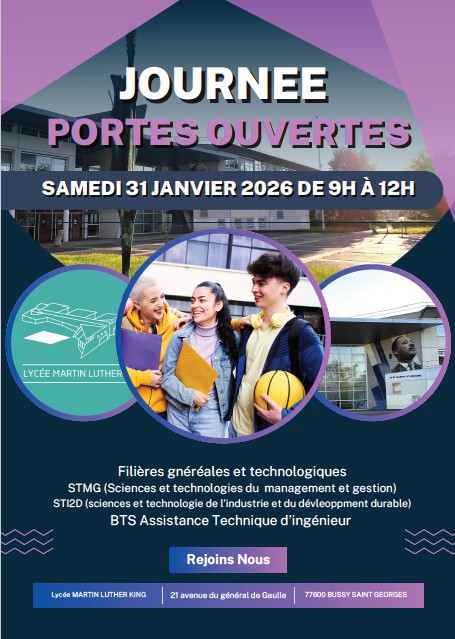 Portes ouvertes du lycée Martin Luther King de Admin | 31 janvier 2026 - 9h00 |7 janvier 2026 Carte non disponible Date/heure Date(s) - 31 janvier 20269h00 - 12h00 Catégories Pas de Catégories Pour marque-pages : Permalien.